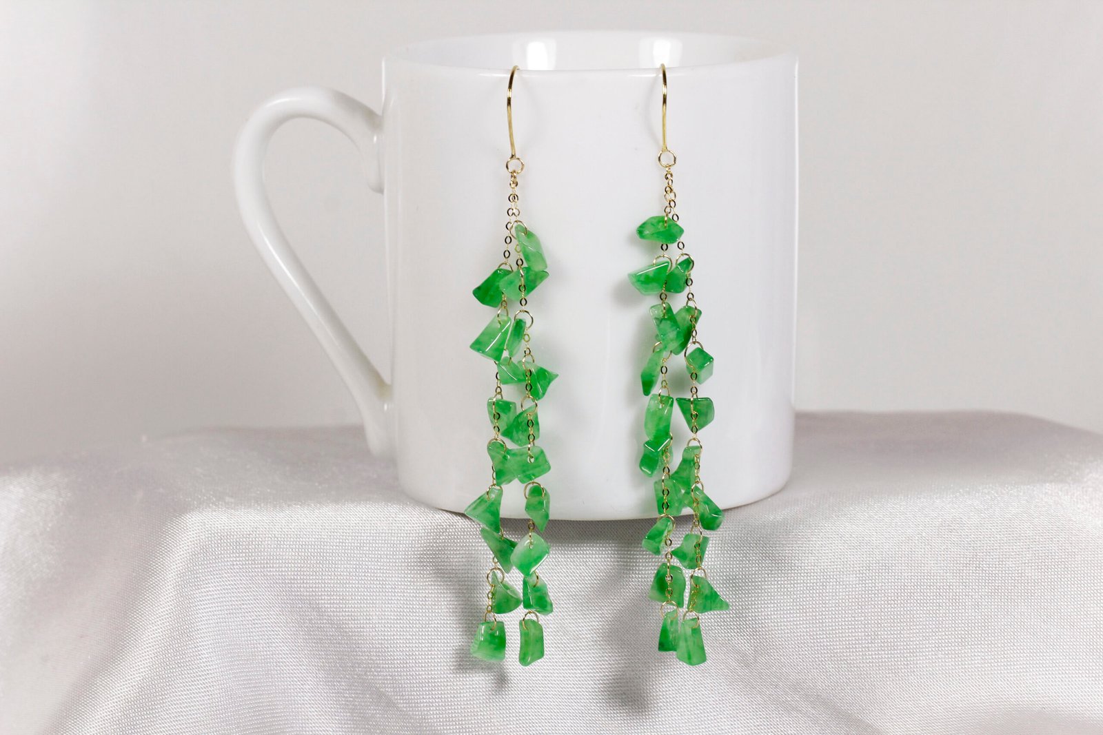天然A貨翡翠流蘇耳環庫存量: 1 件庫存